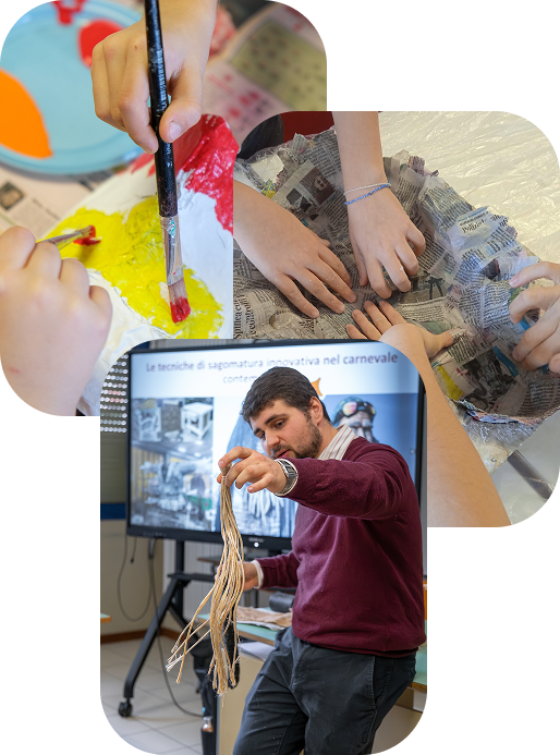 Il Progetto Scuole è un’iniziativa che ogni anno accompagna i bambini in un viaggio creativo attraverso la magia del Carnevale. Da novembre a gennaio, i laboratori trasformano materiali semplici in straordinarie creazioni: dalle zucche di carta ai pesci di cartapesta, dai dinosauri alle maschere veneziane, fino agli amuleti egizi e ai paesaggi ispirati al Piccolo Principe. Ogni attività è pensata per stimolare manualità, fantasia e curiosità, portando i ragazzi a esplorare temi diversi con spirito giocoso e collaborativo.
